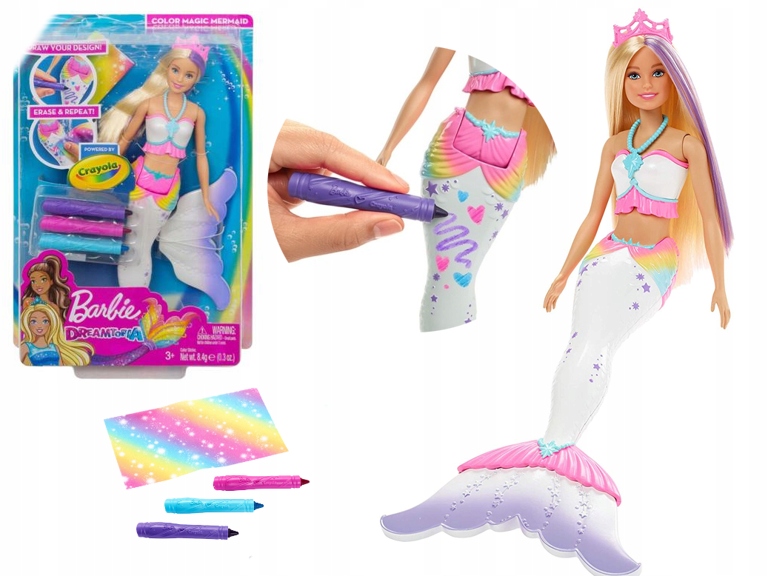 Barbie Crayola Syrenka Lalka Kolorowa Magia Gcg67 7828135801