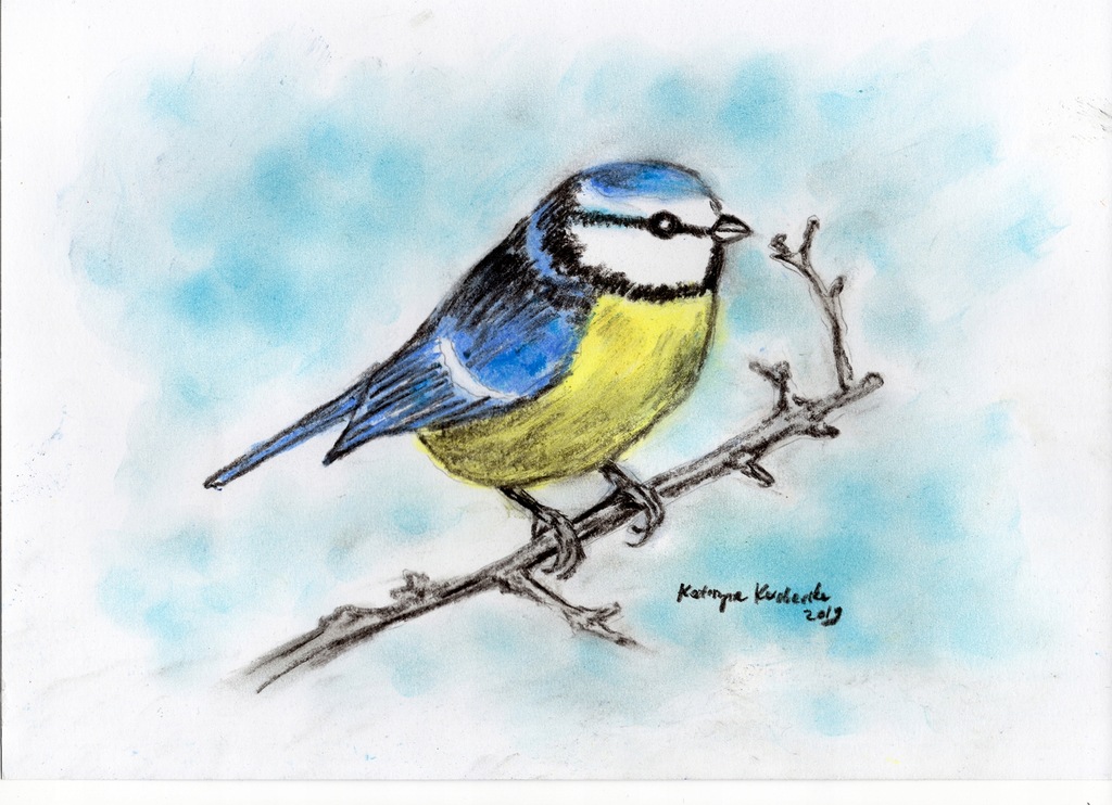 Rysunek Ptaki Sikorka Modraszka Suche Pastele 8760428132
